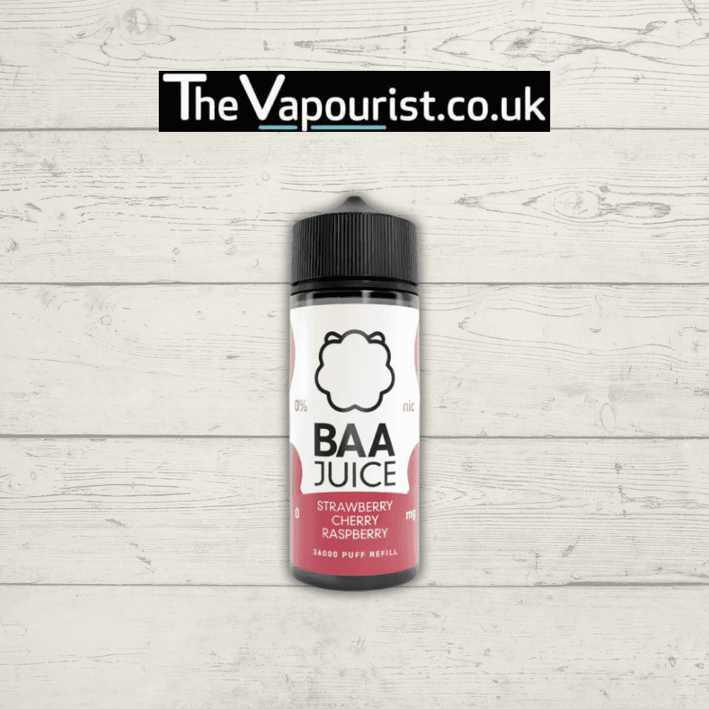 Baa Juice Strawberry Cherry Raspberry is a bold and fruity e-liquid that combines ripe strawberries, sweet cherries, and tangy raspberries into one perfectly balanced vape. This 100ml shortfill is mixed at a 50/50 VG/PG ratio, making it ideal for mouth-to-lung (MTL) devices such as starter kits, pods, and low-wattage vape pens.